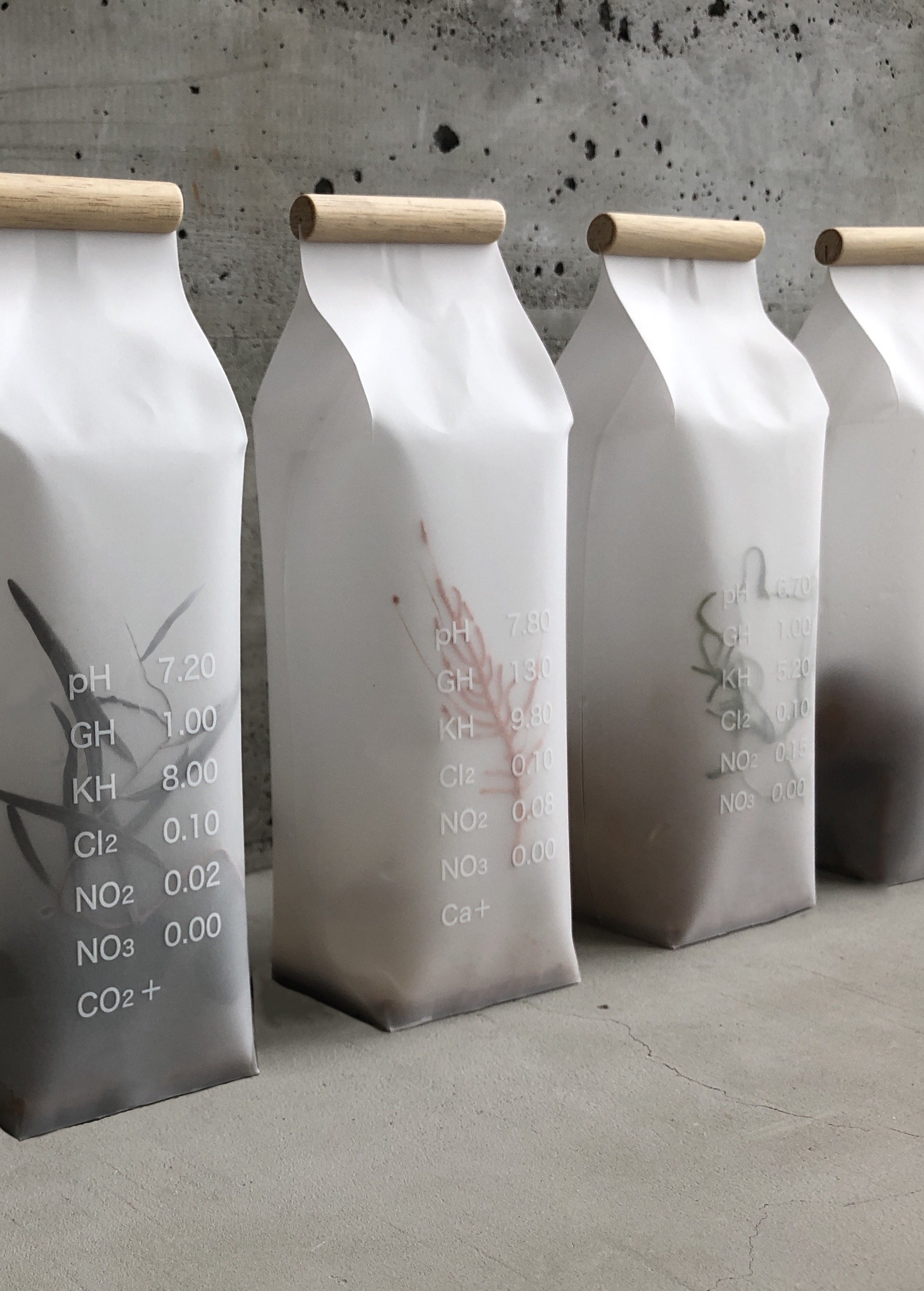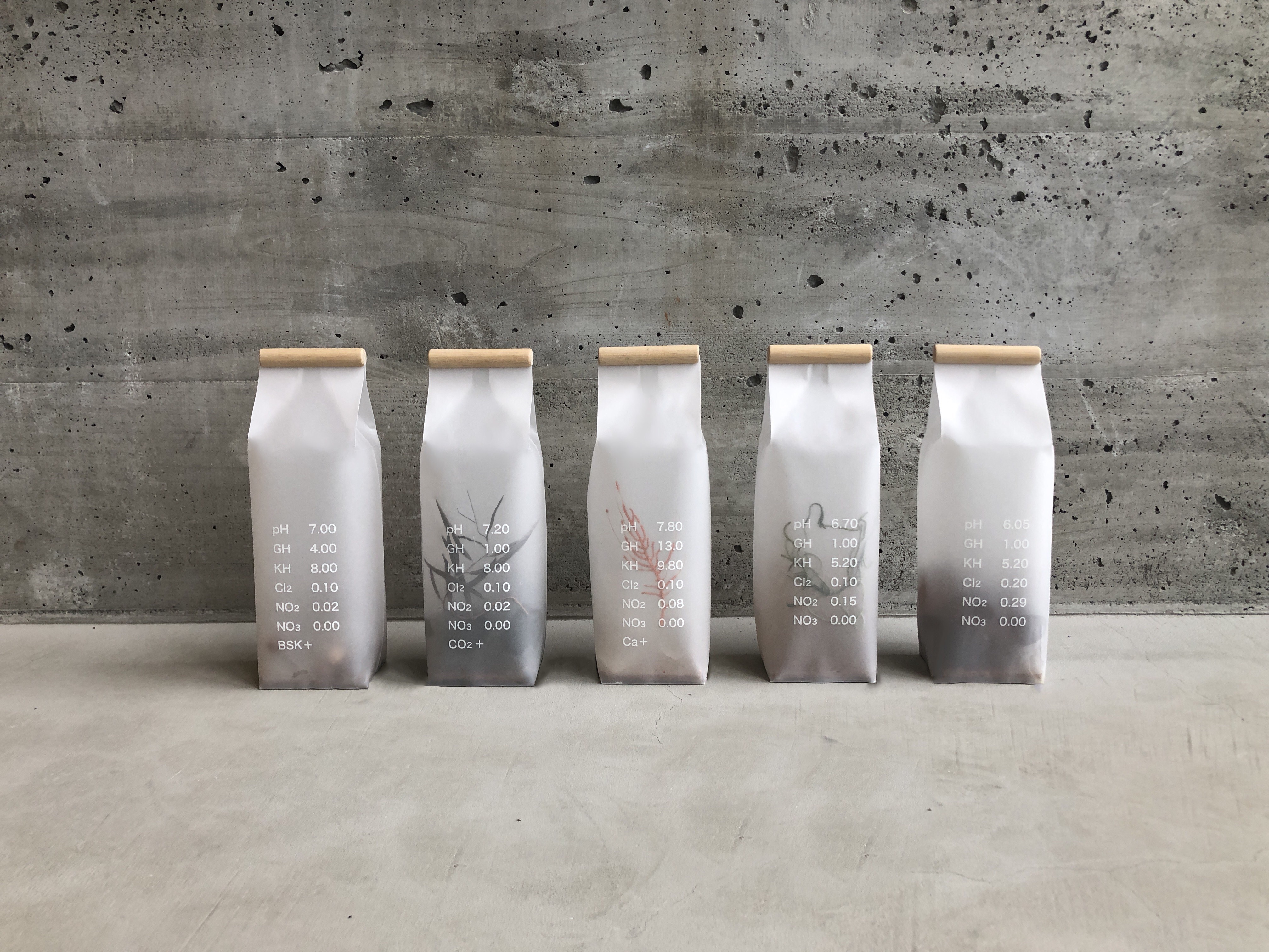 Project: Poiesis /2018Water is the essence of life for aquatic animals and plants, just as air is essential for us humans. When you think about it that way, you can imagine how sensitive they are to water quality changes. This product uses the chemical phenomenon called osmosis. When you put this into a fish tank, components inside slowly pass through the membrane, the quality of water changes gradually to the ideal. Designing the movement of water, this is candy for your fish and your fish tank.